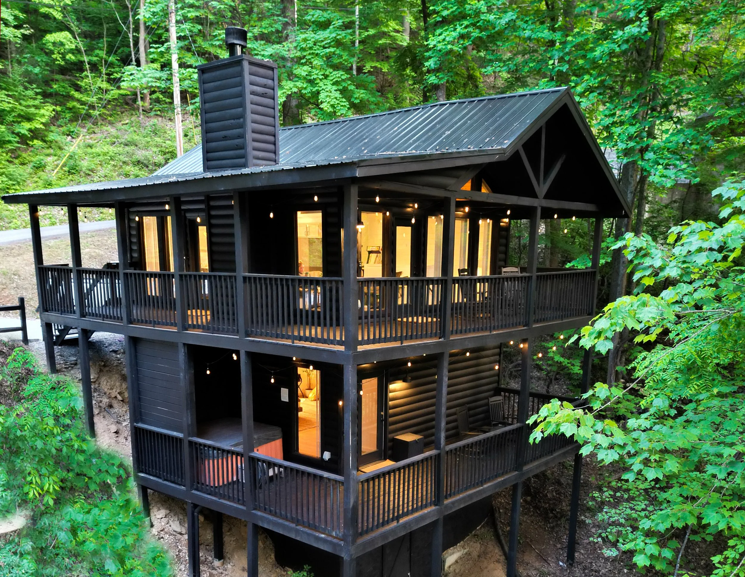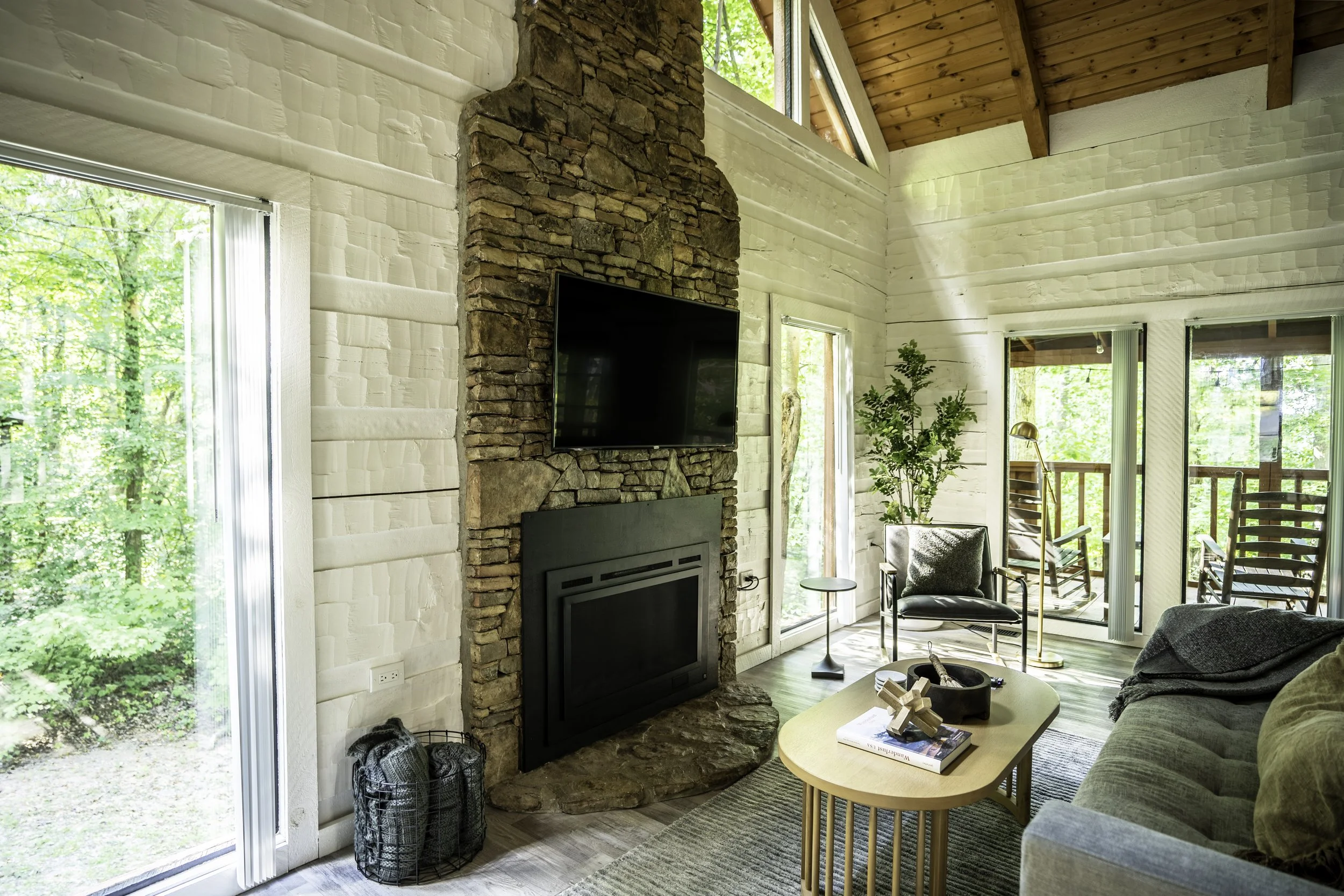 Traditional log cabin located in the Great Smoky Mountains Tn. Scope of work included property acquisition, interior and exterior renovation, landscape, interior design, and complete setup as a functioning short term rental. All aspects of this project managed in house by our team.
